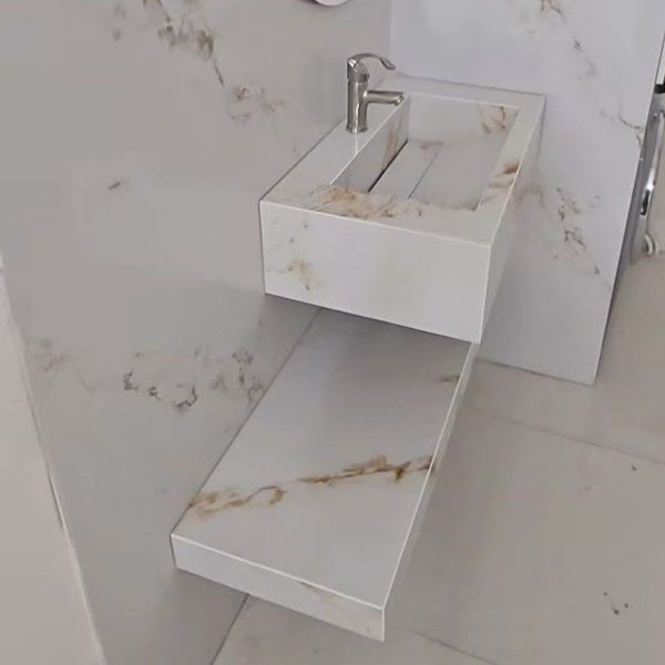 سوپر پولیش با کابینت زیرین و بغل آیینه آیینه چراغدار
