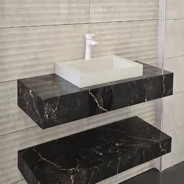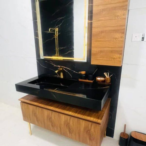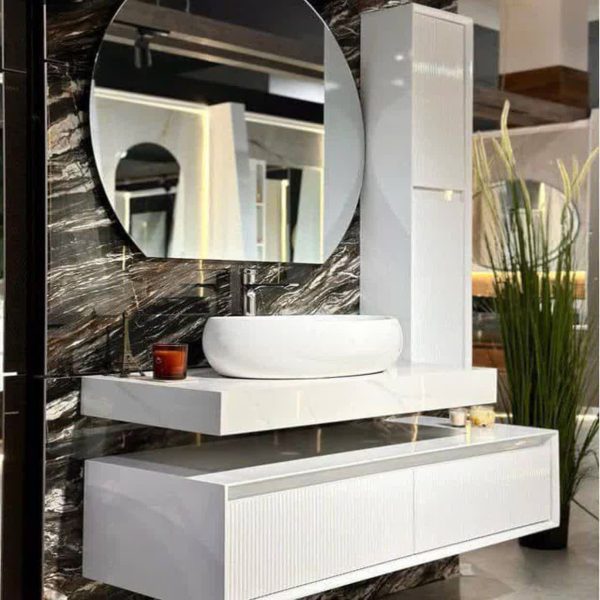 سوپر پولیش با کابینت زیرین و بغل آیینه آیینه چراغدار